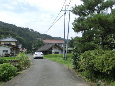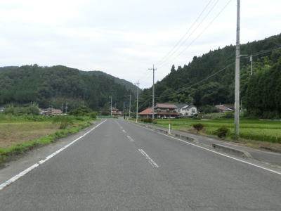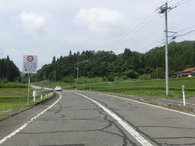| 件のT字路はバイパスの終わりを意味しており、右折すると1.8車線と狭くなってしまう。その後すぐに再びT字路に突き当たるが、今度は左折である。ここには案内標識が設置されていないが、右折すればr6方面に戻るルートだという事が分かっていれば自然と左折するだろう。そのr6に戻る道路がバイパス開通前の旧道である。 上城集落を1.0車線幅の狭路で通過する。最後の家屋を通り過ぎると水田の脇を通過する。水田が途切れるまでは比較的明るい雰囲気と言える。道幅は変わらず狭いままで乗用車同士の離合すらままならない。 |
