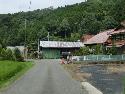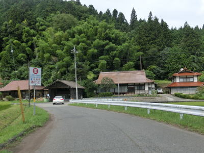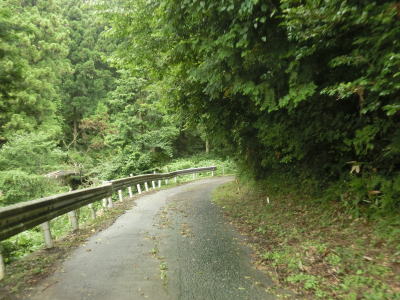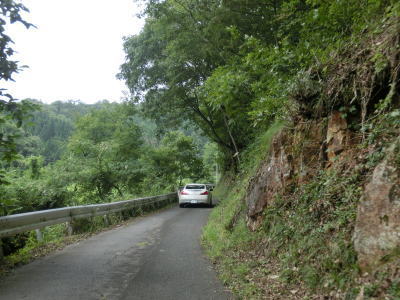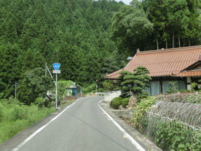 | 頭上を覆う樹木の密度が薄くなってきて日光が差し込む多少なりとも明るい雰囲気になってくると、町道だか林道だかとの交差点を通過する。峠から下りてきた場合は何も気にせず直進するだけだが、峠に向かう場合は狭くて怪しげな国道と広いとまでは言えないが右に下る町道(林道?)の差に驚く事だろう。直進がR433である旨の標識がなければ右折してしまう事もあり得る。 町道(林道?)との交差点からは道幅は相変わらず1.0車線と乗用車同士の離合もままならないくらい狭いが、空は開けており左側には水田もあり集落が近い事が分かる。 |