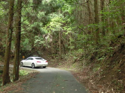 | 63.養魚場(?)の先で改めて警告 | 64.日当たりが悪いらしく苔むしている | 65.前を走るスカイラインはカーブの度に10km/hまで減速… |