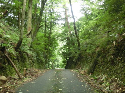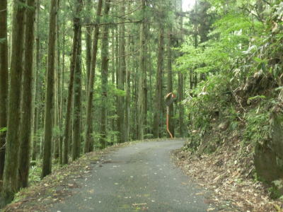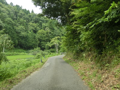 | 72.雰囲気が明るくなってくる | 73.町道(林道?)との交差点を直進 | 74.左側には水田が見える |