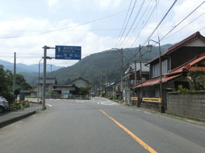 | R187交差点の直後に十王橋で中ノ瀬川を渡り、道の駅「ピュアラインにしき」の前を通過する。その後は中ノ瀬川に沿っているが、ほぼ平坦で急なカーブもないので走りやすい。100番代国道に重複しているものの交通量はさほど多くない。 山口r131交差点を通過し右の急カーブを曲がった先、新出合橋の南詰の交差点を右折するとR187から分岐して単独区間になる。R187との重複区間は約1.8kmとこれまでの重複区間に比べて非常に短い。 |