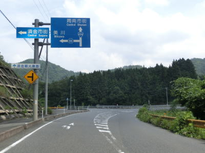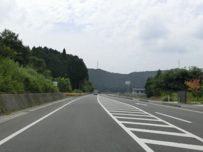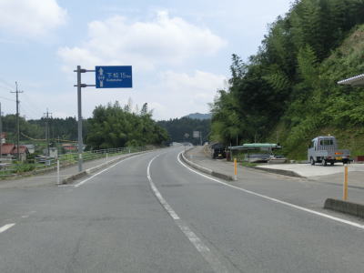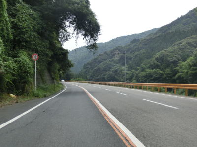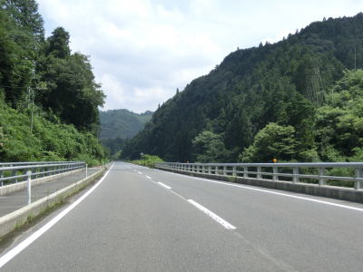 | 錦川の左岸のほぼ平坦だがカーブの多い2車線道路を淡々と走る。バイパスとは言え忠実に川に沿っている区間のため急なカーブも少なくないが、交通量の少ない2車線なので走りにくいと感じる程ではない。 | ||