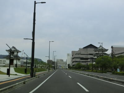 | 報時鐘の東隣はかつては四国フェリーの宇野港行きの乗船口やターミナルがあったが、どちらも撤去されて跡地は駐車場になっている。ターミナル跡の東端でフェリー通りとの交差点を左にカーブしながら通過する。左側車線は玉藻町駐車場への左折車線になるため、国道をトレースするには右側車線を走る必要がある。 フェリー通りとの交差点のすぐ先の市道が交差しているY字形状の交差点がR436(実質、R30)の高松市側の端点である。サンポート高松玉藻交差点の北にフェリーの発着場がある現在では国道の端点がズレているように思えるが、かつての宇高国道フェリーは端点のすぐ傍で発着していた。こちらは営業こそしていないがターミナルの建屋と乗船口は残っている。 |