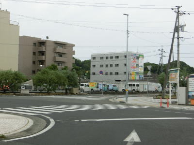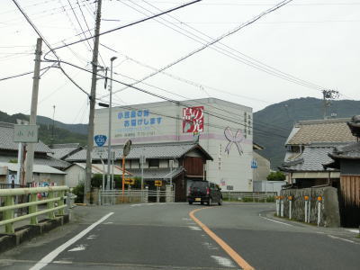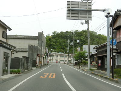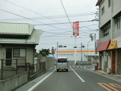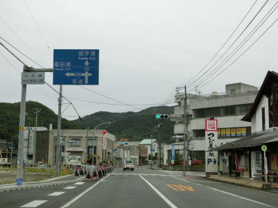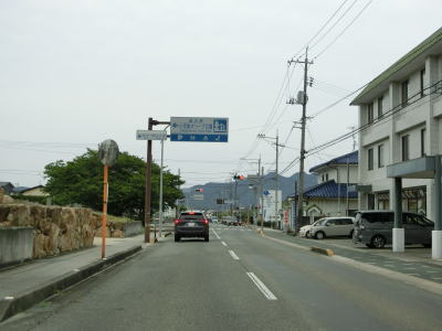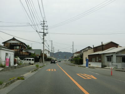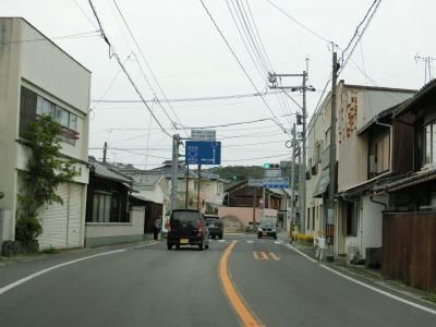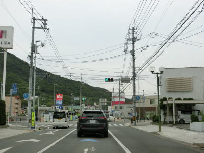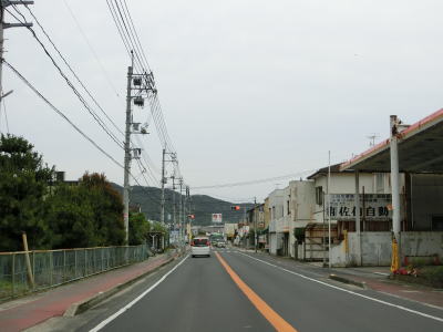 | 西村農免農道との交差点を通過して海に沿って大きく右にカーブすると小豆島町の中心部に差し掛かる。中心部の西端にある草壁港は高松港を結ぶフェリーが就航していたが、利用客の減少はコロナ禍によって池田港発着便と統合される形で休止となっている。あくまで“休止”だが、実質的には“廃止”と思われる。 香川r29との草壁本町交差点を通過する。r29は寒霞渓公園線という路線名であり、日本道路公団によって建設されており、かつては有料道路であった。草壁本町交差点を過ぎてからは小豆島町の中心部を通っているせいもあって沿線の建物だけでなく交通量も多い。 |