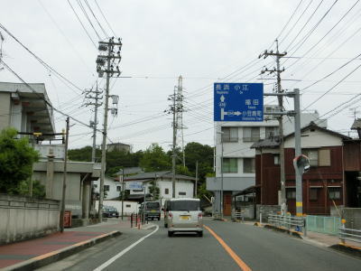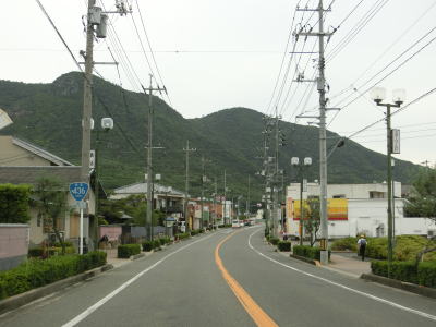 | 渕崎交差点の直後は平坦だが沿線の家屋が少なくなると同時に上り勾配が始まる。峠部分を池田湾を望みながら緩やかな勾配を下り、平坦になる辺りで町境を越えて小豆島町に入る。全国チェーンの店があるせいか、離島に来たという雰囲気はいまいち感じずらい。 | ||