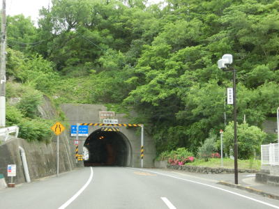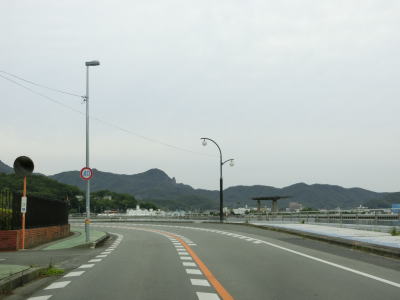 | オリーブ公園入口交差点を過ぎて少し進むと海沿いを走るようになる。鬼ヶ崎には自販機が設置された簡易パーキングがある。その端に福田港までの距離と土庄港までの距離が表記された看板が設置されており、前者は16km、後者は12kmである。海岸線から離れる事はあるが概ね海に沿っており、内海湾の向こう側の田浦半島もよく見える。 | ||