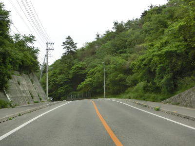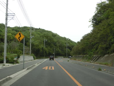| 迎地交差点を過ぎると上り勾配となり、池田大池の北端部を過ぎると沿線の家屋が殆どなくなる。標高80mの大峠を越えると旧内海町に入る。上り勾配となる反対向きの車線にはゆずり車線が設置されている。 | ||