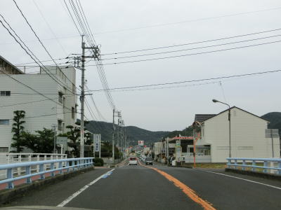 | 駅前ロータリーならぬ港前ロータリーを回って土庄港側の端点から国道トレースを再開する。商店や宿泊施設が立ち並ぶ中の対面2車線道路を走るとすぐに香川r254吉ヶ浦交差点を通過する。吉ヶ浦駐車場の出入口を過ぎると河川沿いを走っているように見えるが、土渕海峡という海に面している(厳密に言えば海峡に造られた港湾部分か?)。土渕海峡の最狭部は9.93mであり、世界で最も狭い海峡としてギネス記録に認定されている。 | ||