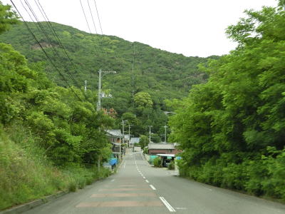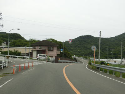 | 大阪城石垣石切丁場跡(の入口)以北は旧道との交差点を何ヶ所も通過する。各々の旧道の距離は非常に短く、中には通行できない箇所もあるが、ウォっちずにおいて現役の国道として表記されている。直線道路を下って旧道と合流すると同時に当浜集落に入る。当浜橋を渡ると上り勾配となって標高を上げる。 | ||