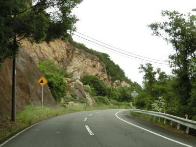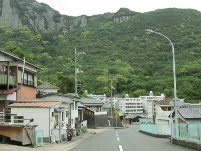 | 76.国道の指定を外れていない旧道がある | 77.当浜集落に向かって下る | 78.風呂敷に包まれているように見える岩 |