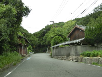 | 岩谷集落を過ぎた直後は大阪城石垣石切丁場跡の傍を通る。傍と言っても山中にあるため遊歩道を歩かなければならない。いくつかある石切丁場跡のうち、遊歩道が整備されていないためガイドの案内が必須の場所もある。展望台もあるが、それ以外の場所は樹木が生い茂っているため眺望が利かない。 | ||