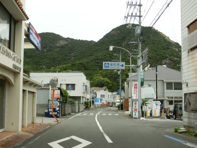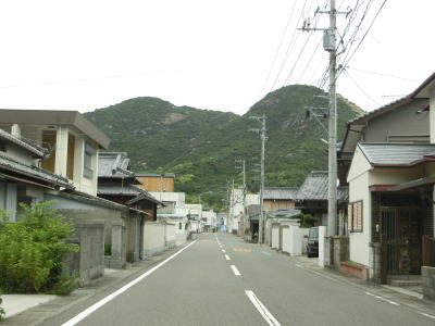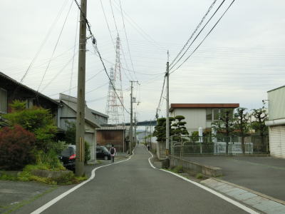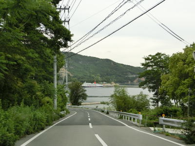 | R436の、特に小豆島内の東部の特徴として沿線に石のオブジェのようなものがいくつか置かれている点が挙げられる。これは小豆島が花崗岩の産地である事に由来すると思われる。福田集落に向かって下っていると港内に四国フェリーの船舶が視認できた。9:20福田港発の2便目であろう。沿線の家屋が増えた所で下り勾配が終わって平坦になる。 | ||