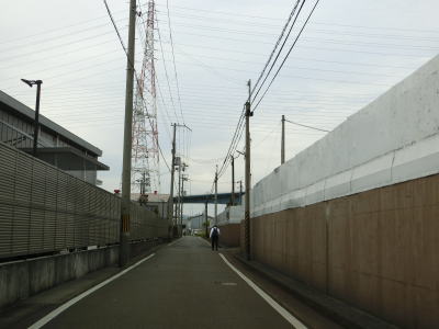 | 93.送電鉄塔付近に短距離の歩道あり | 94.飾磨臨海大橋をくぐる | 95.飾磨臨海大橋の北に右急カーブあり |