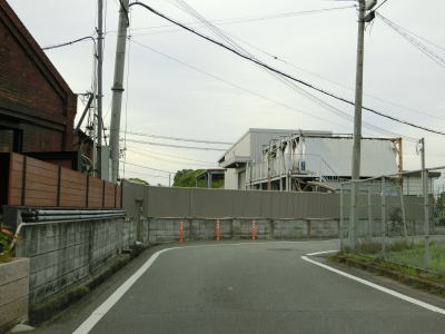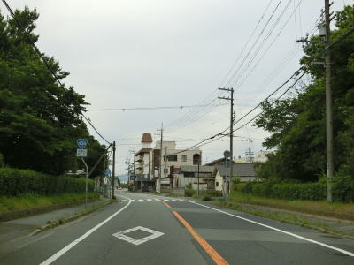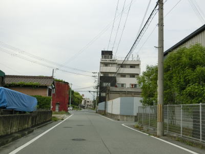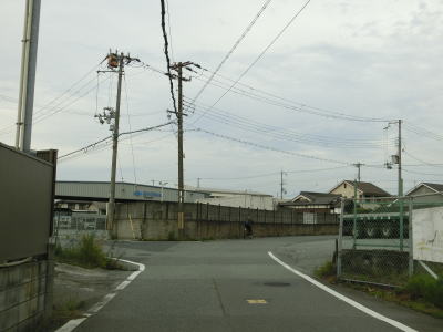 | 右急カーブのすぐ先に市道が交差しているY字路があるが、国道は道なりに右方向ではなく左折しなければならない。前述のとおりフェリー港と市街地のメインルートでないせいか、案内標識の類は設置されていない。 Y字路以降も2.0車線幅道路を走り、約100m先でセンターライン付きの2車線道路に突き当たる。この交差点にも案内標識が設置されていないが、右折が姫路市街地方面である。ウォっちずを見ると左折方向の道路も国道に指定されているようだが、港湾道路(?)との交差点までの100m弱の支線である。なお、2021年発行のスーパーマップルではY字路〜支線交差点間のルートが誤っている(国鉄飾磨港線跡に道路が描かれており南向きの一方通行となっている)。 |