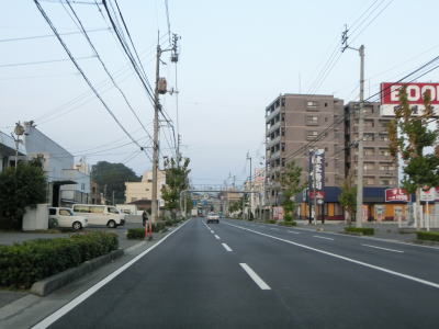 | 案内標識に松山港とあるが、観光港が6km、三津浜港が3kmとなっており異なる位置にある事が分かる。R437の海上区間の港は後者の三津浜港である。JR予讃線を越える跨線橋の勾配を下り切った所で愛媛r19交差点を通過する。r19は路線名を松山港線と言って松山港(観光港)を結ぶ県道である。r19交差点を過ぎてすぐに跨線橋を越えるが、その下にあるのは伊予鉄道の高浜線である。 | ||