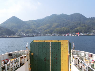 | 出港から1時間強で伊保田港に到着する。乗船時にバックしたが出る際は当然ながら前進して下船する事になる。上陸してすぐにフェリーターミナルの出入口があるが、そこに繋がっている道路は国道ではない。右折して150m程は愛媛r351である。 | ||