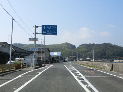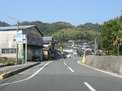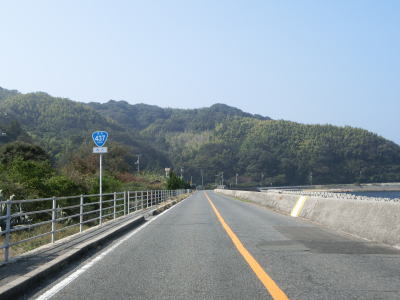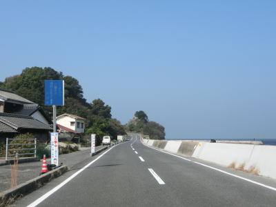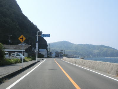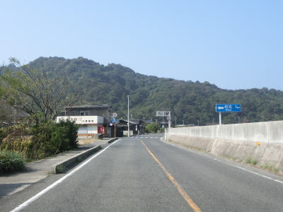 | 神浦集落でも町道との交差点を通過するが、ここも南沿岸の和佐集落までの距離は1kmと短い。神浦集落を過ぎるとしばらくは集落のない状態が続く。海に目を向けると有人島の浮島をはじめ、いくつもの小さな島が目に入る。 | ||