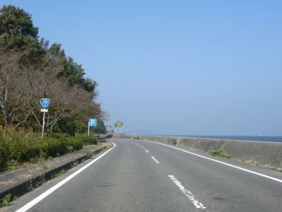 | 海沿いの集落を繋ぎながらシーサイドルートを淡々と走る。大崎鼻の手前で大崎トンネルをくぐり、大きく左にカーブした後に大崎鼻灯台の近くを通ってから大崎橋を渡る。大崎橋の下は河川ではなく海である。 | ||