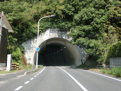 | 6%の勾配区間が始まると登坂車線が現れる。その延長は1.1km程度で途中に広島東洋カープのウエスタンリーグの由宇練習場がある。登坂車線が終わってからも緩やかな勾配を上り続けて祖生トンネルをくぐる。旧道と思われる道路が坑口の手前に交差している。ゲート等で閉鎖はされていないようだが、通り抜けられるか怪しいような雰囲気であった。 | ||
