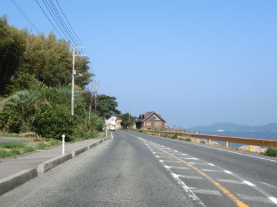 | 61.改良済み区間を過ぎても2車線道路 | 62.右前方に見えるのは防予フェリー | 63.幣振島が見える |