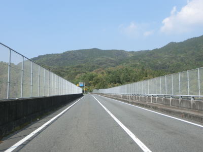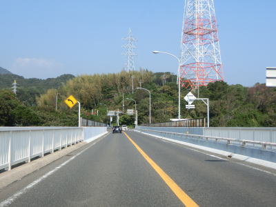 | 山口r68・r149交差点を過ぎて上り勾配になる所で市境を通過して岩国市に入る。その後も上り勾配が続いているが、緩やかなので走りにくさは感じない。緩やかな左カーブを曲がって跨道橋を通るが、その下には周東広域農道が通っており、跨道橋の北の交差点から行き来できる。両脇にフェンスが張られた長田大橋を渡ると左カーブを曲がる。 | ||