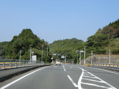 | 岩尾の滝トンネルを出てすぐに旧道との交差点を通過するが、岩尾の滝へはこの旧道へと進まなければならない。バイパス区間が終わってからも改良された走りやすい2車線道路が続いている。アップダウンが多いものの緩やかなので車で走っている分には気にならないだろう。 | ||
