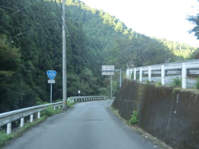 | 旧木屋平村の中心部に至る市道が交差している左カーブを曲がるが、急なためか拡幅した際に中央分離帯が設置されている。右ヘアピンカーブの後にカーブの少ない区間を走り、左の急カーブを曲がる。道幅が少し広くなった所でR439・R492との交差点に至る。右急カーブにR492が交差しているため右手前方向にR492、右奥方向にR438と案内されているが、進行方向としては道なりに右へ進む感じである。なお、この交差点からはR492も重複しているが、R492は起点の高須交差点までの100km弱という長距離に渡ってR439に重複しているため、単独区間は2割を下回っている。 | ||