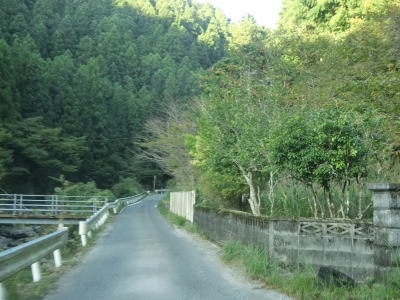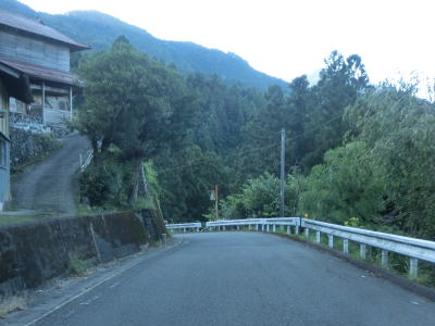 | 勘場バス停を過ぎて少し走ると集落が途切れる。鮎喰川の右岸に移った後に右ヘアピンカーブを曲がりながら橋を渡って左岸に戻る。さらに左ヘアピンカーブを通過した後に国道沿いに建つ最後の家屋の前を通る。国道から少し離れた家屋もあるがそこに至る道路が確認できないので廃屋の可能性が高い。 | ||