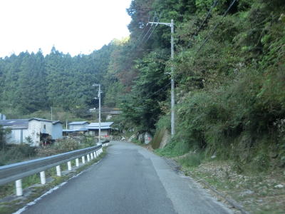 | 鮎喰川に沿った狭路はカーブが多く見通しが悪いものの勾配は非常に緩やかである。沿線には少ないながらも家屋が建っているが、定住者がいなさそうな家屋や廃屋も少なくない。国道から入った山の斜面にも家屋が建っているが、こちらも似たような状態だろう。それでも廃村という訳ではないためバス路線が設定されている。 | ||