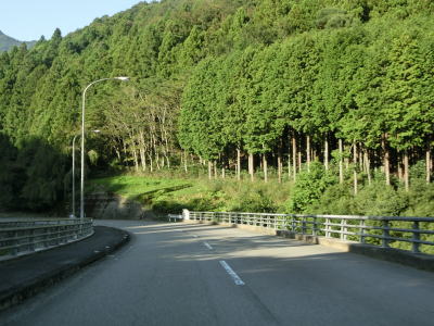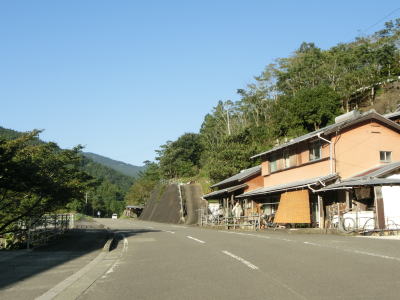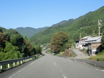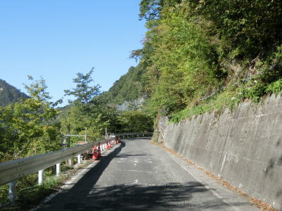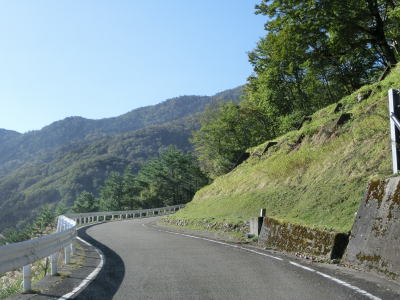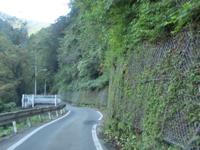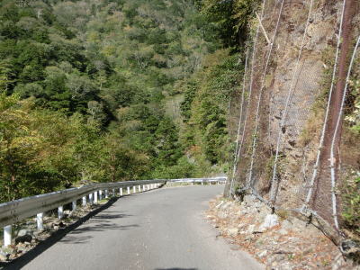 | 穴吹川沿いの2車線道路を淡々と走る。川に沿っているものの急なカーブはなく交通量が少ない事も相まって快走路と言える。集落の西端で川上ヘリポートを通過し、さらに走ると地震観測所(と言っても無人の小さな建物)の前を通過する。 | ||