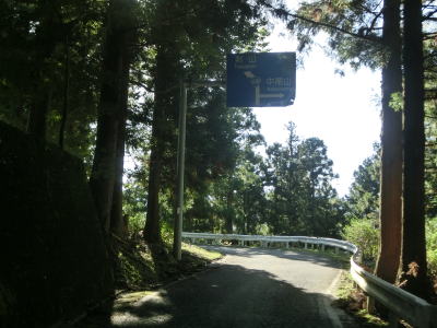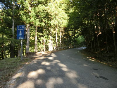 | 75.峠のすぐ近くに家屋がある | 76.狭路区間にも路面キロポストあり | 77.「天行山窟大師参道入口10km→」 |