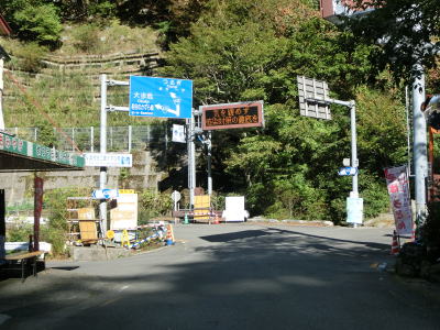 | 道路が少し広くなった所で対向車を知らせる電光掲示板が設置されている。対象区間の出入口にセンサーが設置されており、車両が通過すると反対側の電光掲示板が表示される仕組みである。300m弱の対向車お知らせ区間を終わると多少道幅が広くなるが、1.5車線幅程度で決して広いとは言えない。 | ||