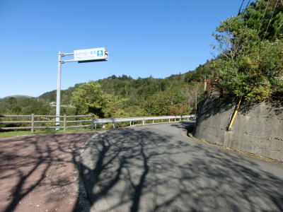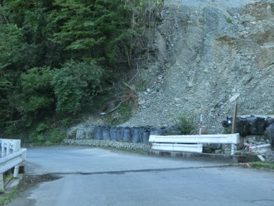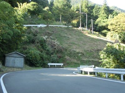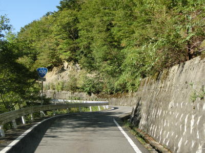 | スキー場付近の2車線区間が終わると狭路に戻る。法面で工事をしている場所を通過するが、大きく崩れたようで第七ヘヤーピンの先に崩落跡が確認できた。その第七ヘヤーピンには塔の丸林業専用道が接続している。“林道”ではなく“林業専用道”となっている事から一般車両の通行は認められていないと思われる。 | ||