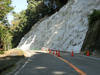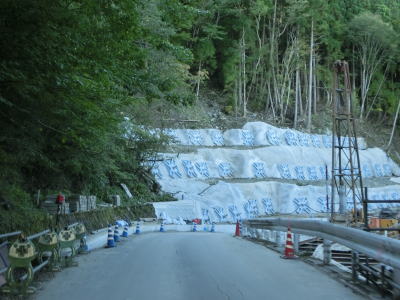 | 186.旧道(?)との交差点 | 187.崩落復旧工事現場は片側交互通行規制中 | 188.急に視界が開ける |