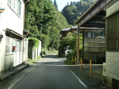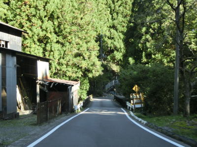 | 144.桑平の大トチ、桑平の大スギへの出入口 | 145.集落に近付いても狭路が続く | 146.第1黒松谷橋 |