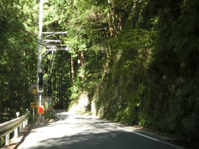 | 一宇橋の手前から始まった2車線区間は急勾配の町道を跨ぐ鳥居付近で終わるが、すぐにセンターライン付きの2車線道路に戻る。しばらく2車線道路を走った後に再び道幅が狭くなる。切越陸橋を渡るが橋上は12tの重量制限がある。なお、橋の下にあるのは河川ではなく切越発電所の送水管である。 | ||
