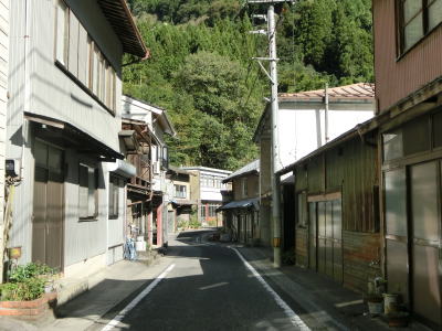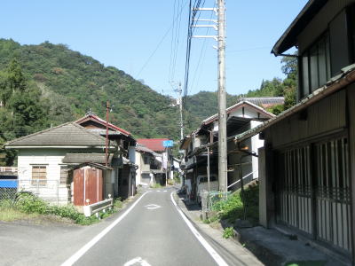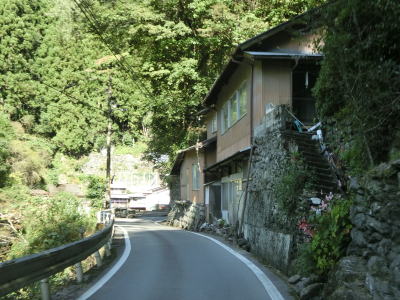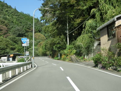 | 旧一宇村の中心部は1.0車線と狭いうえに道路の両側に家屋が建ち並んでおり離合できる場所も限られている。廃校になった一宇中学校の対岸を通り過ぎて貞光川に沿って左カーブを曲がるとさらに道幅が狭くなる。2.0車線幅の古見橋を渡った先で徳島r304との交差点を道なりに右へカーブするように通過する。その後も両側に家屋が建ち並んだ狭路を走る。 | ||