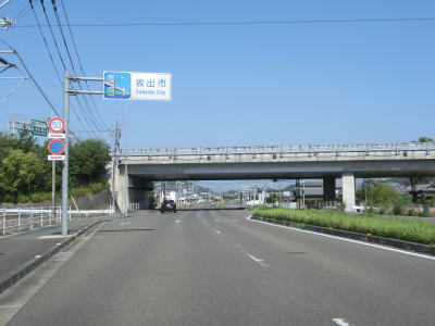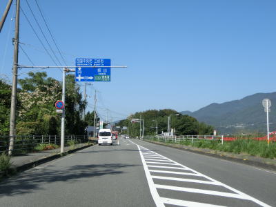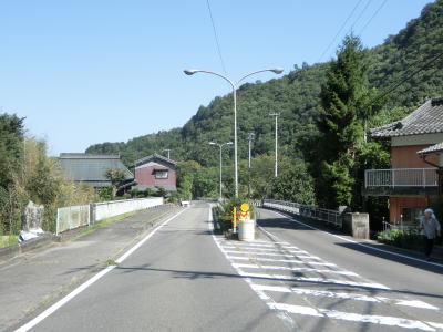 | 緩やかな右カーブを曲がって勝川橋を渡ると土器川の右岸に移り、川に沿いながら緩やかな勾配を下って行く。道路状況の割に交通量は少ないため走りやすく感じる。犬馬場橋を渡って左岸に戻るが、この橋は上下線が分離している。 | ||
