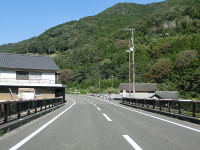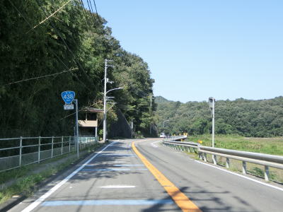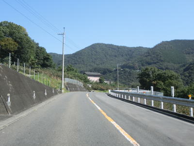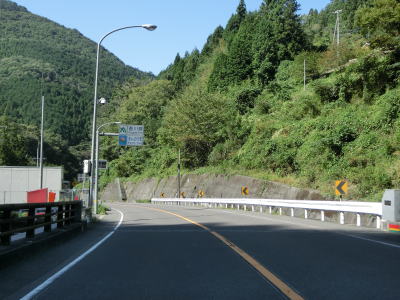 | 整備された2車線道路を左、右と曲線半径の大きなヘアピンカーブを曲がる。勾配もやや急ながら旧道時代に比べると格段に走りやすくなっている。猿坂集落を過ぎると沿線の家屋が途切れるが、その区間に10%の急勾配がある。 | ||