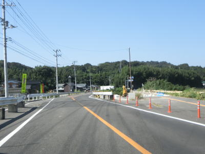 | 王子神社からしばらくは平坦な直線道路を走る。緩やかな右カーブ辺りで沿線の建物が増える。交通量が多く歩道がないため若干の走りにくさを感じる。香川r22島田交差点を過ぎてからも道路状況に変化はない。 | ||