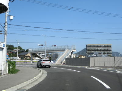 | 香川r195交差点からも見通しの良い2車線道路が続いている。香川r278岡田下交差点を通過した後に高松琴平電鉄琴平線を越える跨線橋を通過する。線路の手前の勾配は4%とさほど急ではないが、奥の勾配は10%とかなり急である。 | ||
