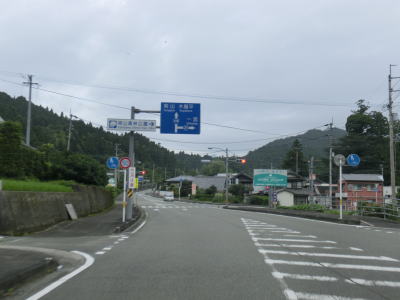 | 神山町の役場付近を通過する。役場付近と言ってもバイパス化されているため、見通しの良い2車線道路が続いている。役場の北西に24時間営業のコンビニがあるが、次のコンビニは高知県土佐町まで進まないと存在しない(2016年7月現在)。距離にして約133kmである。 徳島r43交差点付近など2車線ながら若干狭苦しい道路状況となる事もあるが、基本的には走りやすい2車線道路が続いている。上山大橋を渡って鮎喰川の左岸に移り、川沿いを快走する。対岸にバイパス工事現場を望みながら右にカーブする辺りまでが2車線道路である。 |