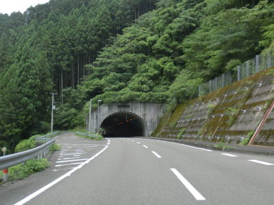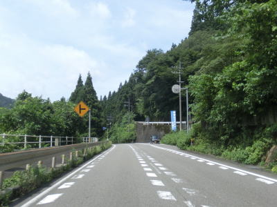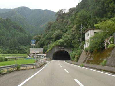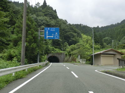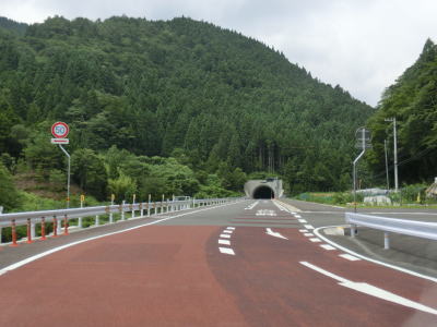 | 2車線快走路を走っているとセンターラインがなくなり1.8車線と少し狭くなった場所が2ヶ所ある。距離も短く見通しが悪い場所ではないのでほとんど気にする事なく通行できる。その後は2車線道路を走っているとトンネルが見えるが、その手前で現道との交差点を通過する。石原トンネルが開通したのは2014年と比較的最近だが、そのせいか開通以前の道路も国道の指定を受けたままである。トンネルを出ると現道との交差点が2ヶ所ある。 | ||