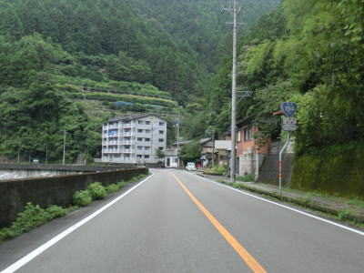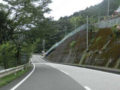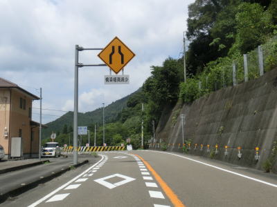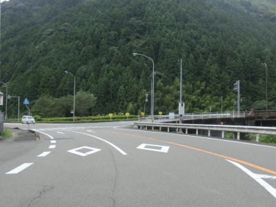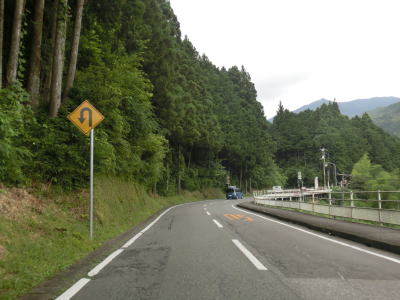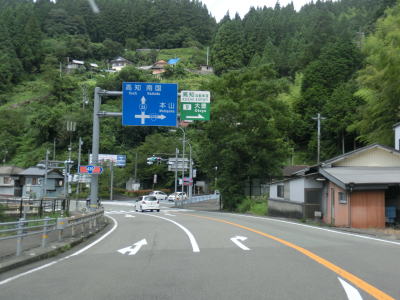 | 多少カーブが多いものの概ね走りやすい2車線道路を走っていると本山町に入る。蛇行する吉野川に沿っているためカーブは多いが、緩やかなものが多くヘアピンカーブが1ヶ所存在している程度である。勾配もほとんどない状態である。本山町の中心部の手前で高知r267を右にカーブしながら通過する。 | ||