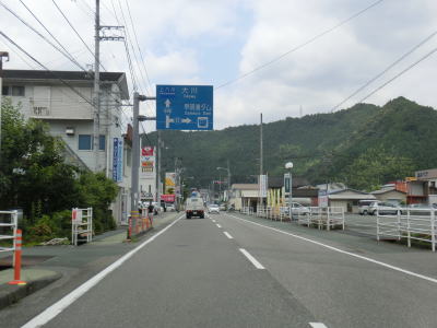 | 高須交差点から約15.6km走ると道の駅「土佐さめうら」を通過する。2016年7月時点では総延長350km近いR439において単独区間では唯一の道の駅である。そしてこの道の駅がR439のほぼ中間地点と言える。40分の工事通行止があったとは言え、徳島本町交差点を走り始めてから既に5時間が経過している。 道の駅からは吉野川の支流の地蔵寺川の左岸を走っている。吉野川沿いの区間と同様に緩やかなカーブとほぼ平坦な2車線道路が続いており非常に走りやすい。高知r16交差点付近までその状態である。 |