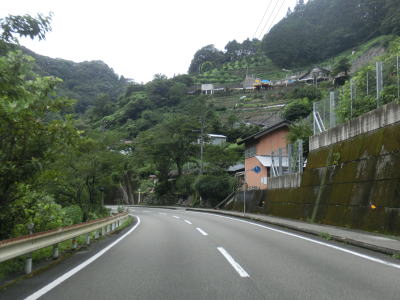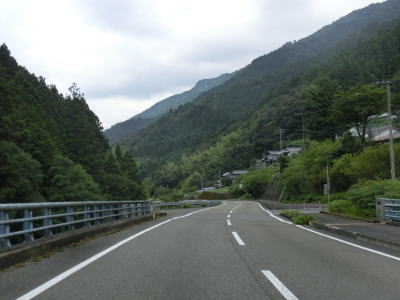 | 高知r16交差点を過ぎると上り勾配になる。地蔵寺川が蛇行しており、それに沿っているR439にもカーブが多くなる。とは言え2車線と整備された道路状況なので走りにくさはほとんど感じない。四国の山間部だが険しい風景ではなく長閑な風景と言える。 | ||