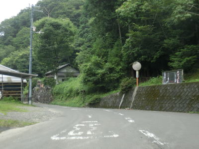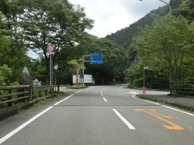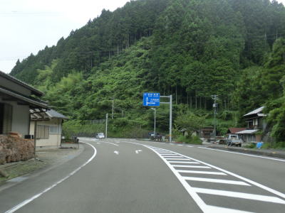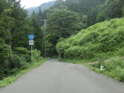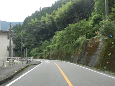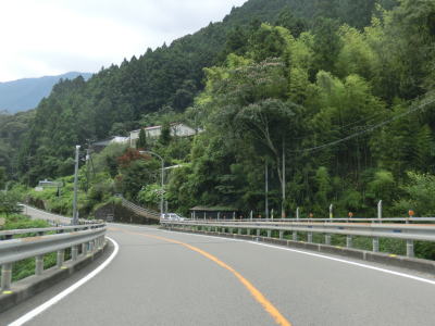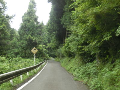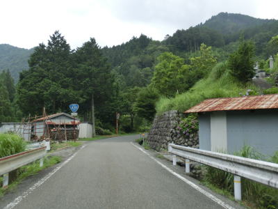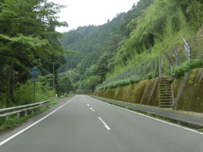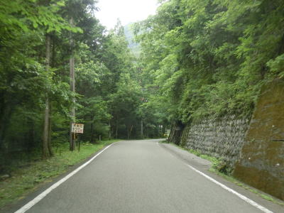| 矢筈トンネルを出てから約2.5km走ると日曽の川集落を通過する。と言っても集落のメイン部分は町道(林道?)沿いにある。町道との交差点からも1.0車線幅の狭路が続いているが、突然センターライン付きの2車線道路になる。しかし改良された区間は短く元の1.0車線幅狭路に戻ってしまう。 | ||