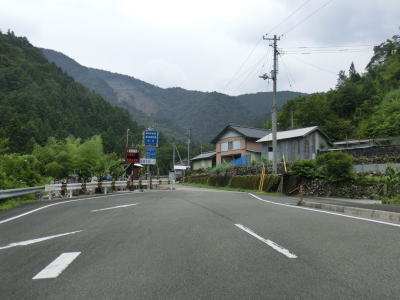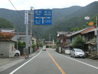 | 土居川に沿って2車線道路を下っていると右前方に比較的大きな集落が見えてくる。旧池川町の中心部でその中をR494が通っている。土居川に架かる池川大橋の南詰でR494池川交差点を通過する。案内標識に表記されていないが、松山・高知方面はR439・R494重複区間である。また、R494の起点は松山市にあるが、酷道区間があるため案内標識には表記されていない。 池川交差点からも土居川沿いの2車線道路が続いている。勾配がほとんどなく平坦なうえに緩やかなカーブが多いため非常に走りやすい道路状況である。 |