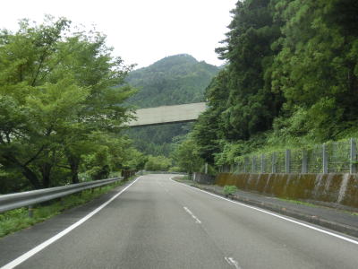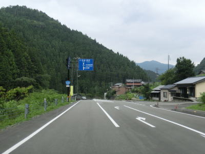 | 御地蔵橋を渡った直後に古味口トンネルに入り、トンネルを出ると長沢橋を渡る。それぞれの橋の北詰と南詰で交差している道路が旧道だが、沿線に集落があるため閉鎖されていない。その後は北川の右岸を走るが、多少急なカーブはある者の平坦なうえに交通量が少ないため走りやすいと言える。中央小学校の東を通り過ぎると旧東津野村の中心部に差し掛かる。 | ||