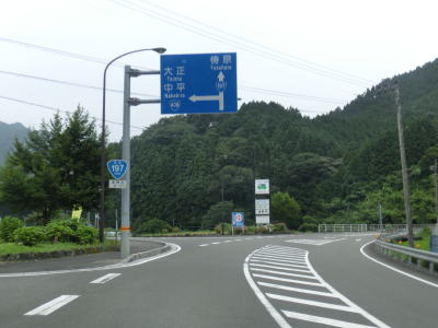 | 川口交差点からはR33との重複区間を仁淀川に沿って走る。山間部ながらアップダウンは非常に緩やかでカーブも急なものがほとんどないので走りやすい。二桁国道との重複区間とは言え交通量は少ない。 | ||